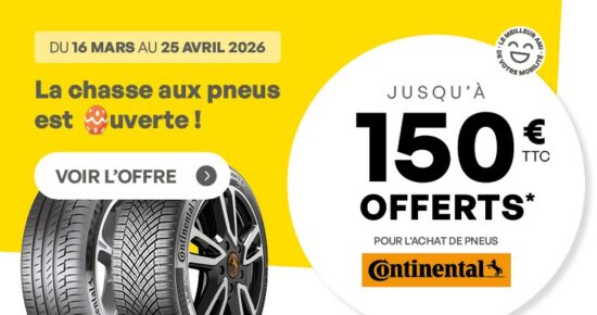 Du 16 mars au 25 avril 2026, profitez de notre offre jusqu’à 150€ offerts* pour l’achat de pneus de la marque […]